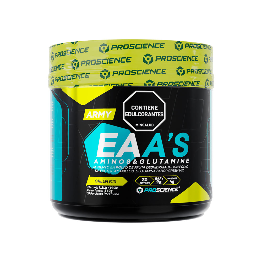 EEA’s Army de ProScience es un suplemento alimenticio en polvo diseñado para preparar una bebida saborizada que aporta los nueve aminoácidos esenciales junto con glutamina, ingredientes ampliamente utilizados en nutrición deportiva. Los aminoácidos esenciales son compuestos que el organismo no puede sintetizar por sí mismo, por lo que deben obtenerse a través de la alimentación. Este tipo de suplementos puede contribuir a complementar la ingesta de aminoácidos en dietas con bajo consumo de proteínas o en personas con una mayor demanda nutricional debido a la actividad física.