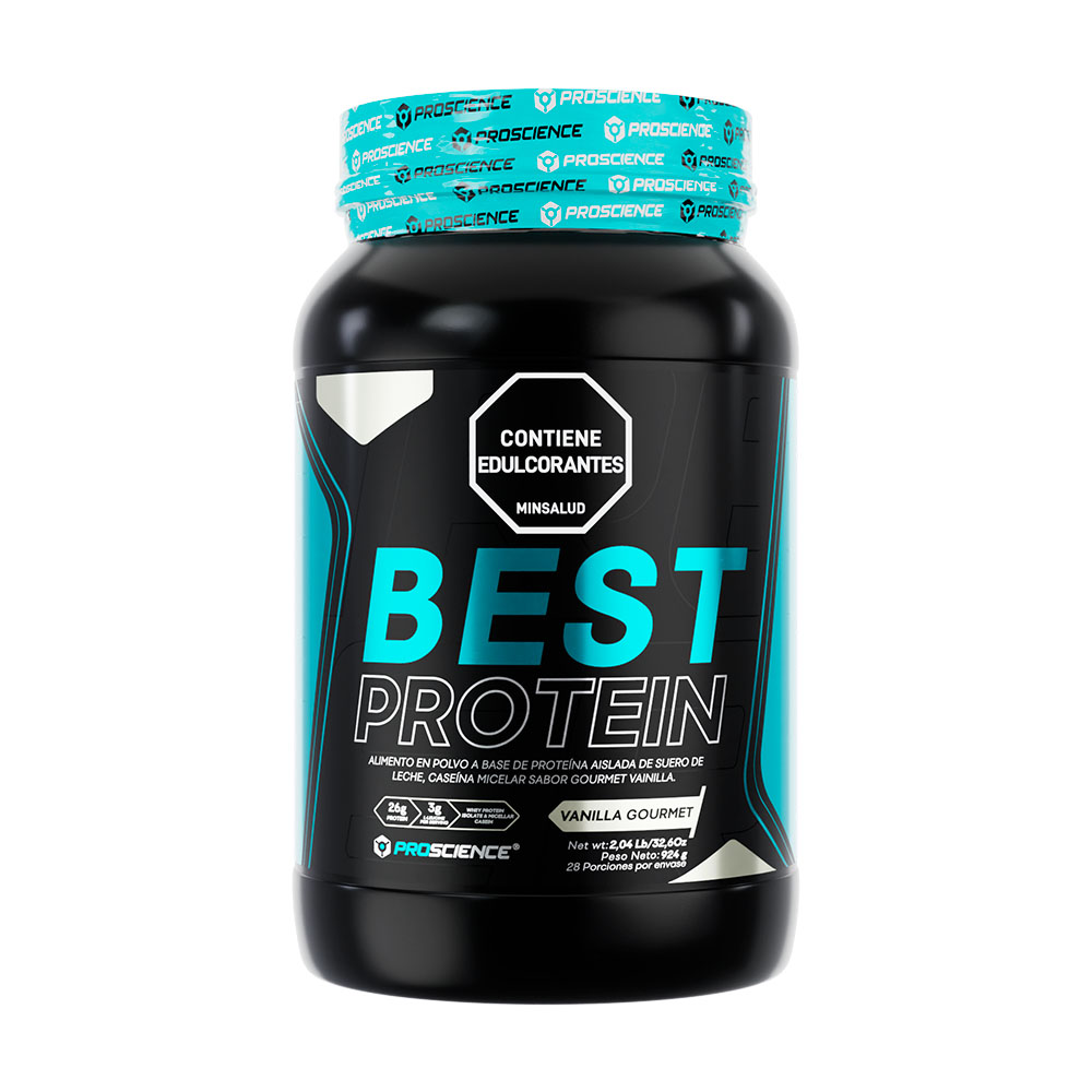 Best Protein de Proscience es un suplemento alimenticio en polvo formulado con una mezcla 3 en 1 de proteínas de alta calidad, combinando proteína de suero aislada, caseína micelar y L-leucina. Esta composición permite aportar proteínas de absorción rápida y sostenida, lo que puede contribuir al mantenimiento y desarrollo de la masa muscular cuando se consume dentro de una alimentación equilibrada y junto con un programa de entrenamiento físico estructurado. Cada servicio aporta una cantidad significativa de proteína con prácticamente sin grasa, sin azúcar ni carbohidratos, ofreciendo una opción limpia y versátil para complementar los requerimientos proteicos diarios.