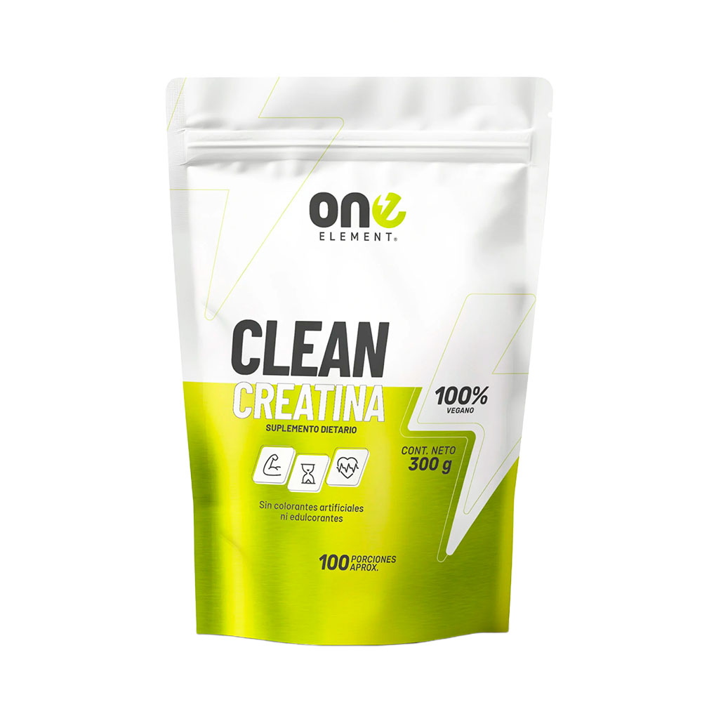 Clean Creatina Monohidratada 100 Servicios de One Element es un suplemento en polvo formulado con creatina monohidratada pura, diseñado para complementar planes de entrenamiento orientados al rendimiento físico y la fuerza muscular. Cada porción aporta aproximadamente 3 g de creatina monohidrato, una de las formas más estudiadas y utilizadas en nutrición deportiva para apoyar la producción de energía durante ejercicios de alta intensidad y corta duración.