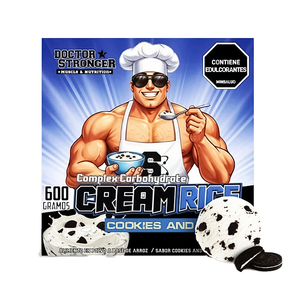 Cream Rice Doctor Stronger es una crema en polvo elaborada a base de harina de arroz instantánea (arroz pregelatinizado para facilitar su disolución). Se utiliza comúnmente como una opción práctica de carbohidratos y puede incluirse en diferentes momentos del día según las preferencias de cada persona.