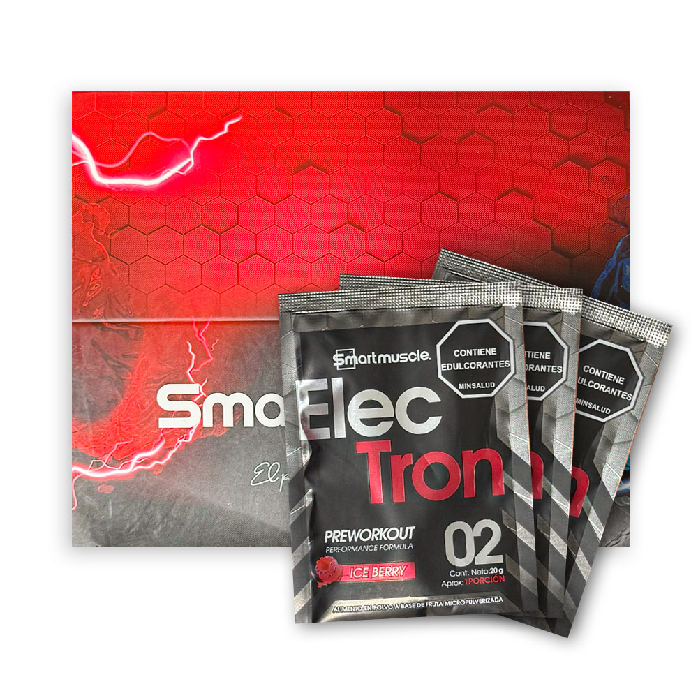 Electron de SmartMuscle es un suplemento alimenticio en polvo formulado como pre-entreno, diseñado para complementar la energía, el enfoque y el rendimiento físico antes de la actividad física. Su fórmula combina aminoácidos como citrulina, beta-alanina, arginina, taurina y tirosina, junto con cafeína anhidra, una mezcla utilizada en nutrición deportiva para apoyar la resistencia, la concentración y la disposición al entrenamiento. Además, incorpora ingredientes como extracto de remolacha, niacina y fruta micropulverizada, dentro de una formulación pensada para consumirse antes del ejercicio. Se presenta en polvo de fácil disolución.