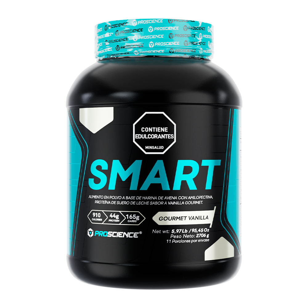 Smart de ProScience es un suplemento alimenticio en polvo formulado a partir de fuentes de carbohidratos complejos y proteínas lácteas, diseñado para complementar la ingesta calórica diaria. Su fórmula combina harina de avena y amilopectina como fuentes principales de energía con proteína de suero de leche y caseína, proporcionando una mezcla de macronutrientes que puede integrarse dentro de planes nutricionales orientados al aumento de masa corporal.